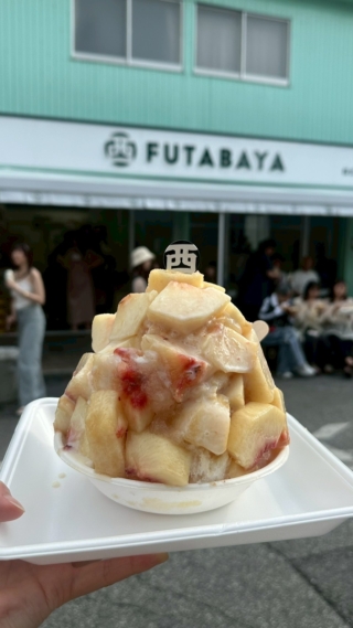 しばらく歩き回って、次に二葉屋に行きました。娘たちにとってはお目当ての場所でしたが、私は全く知りませんでした。ここは超びっくりかき氷屋さんです。