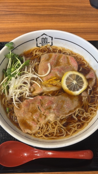 近江牛入ラーメンを食べました。ボリュームたっぷりでとてもおいしかったです。お腹もまずまず満たされたので、本格的に食べ歩きツアーの始まりです。